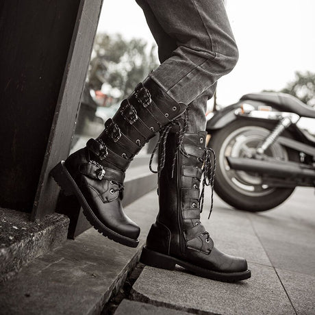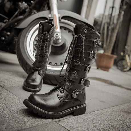 Retro Punk Leather Motorcycle Boots